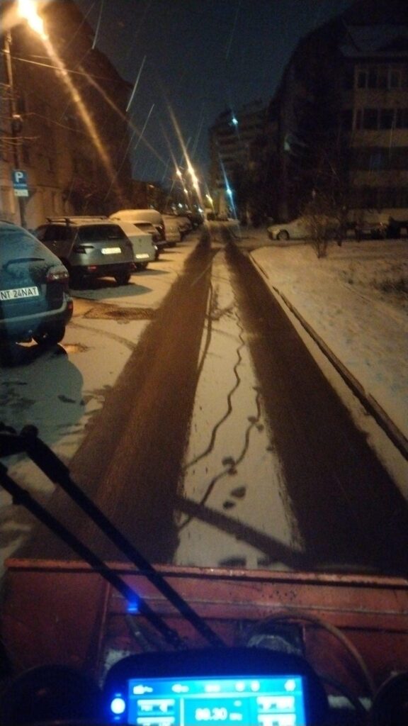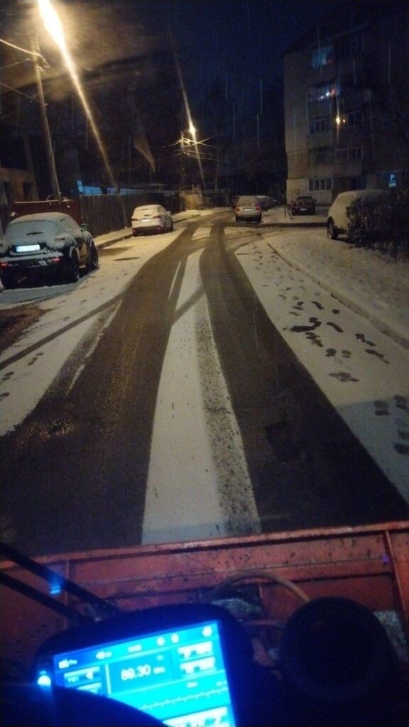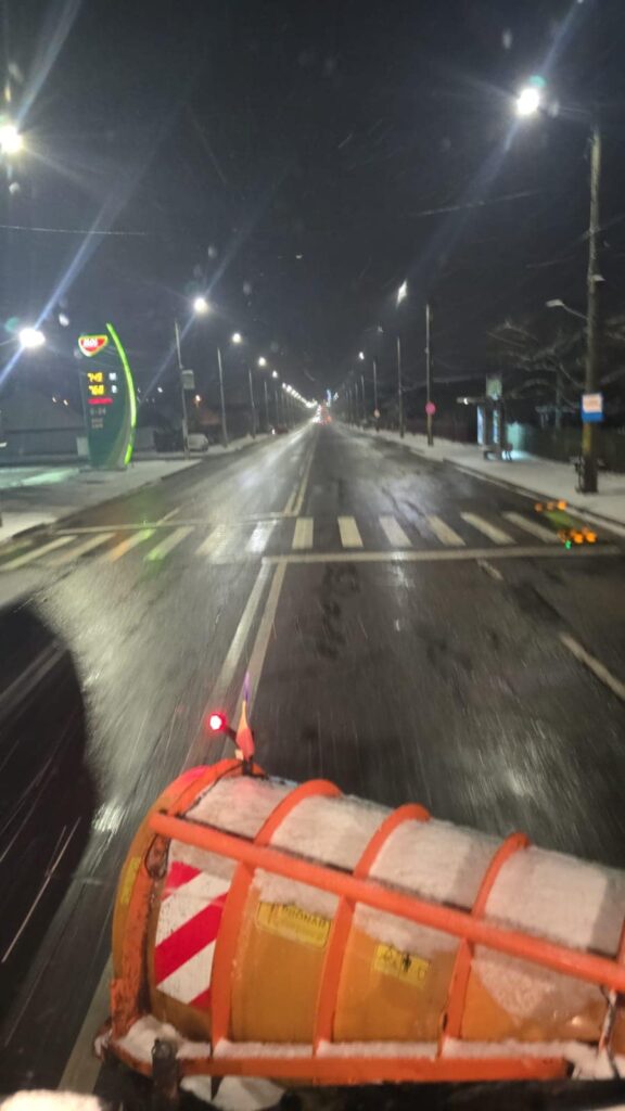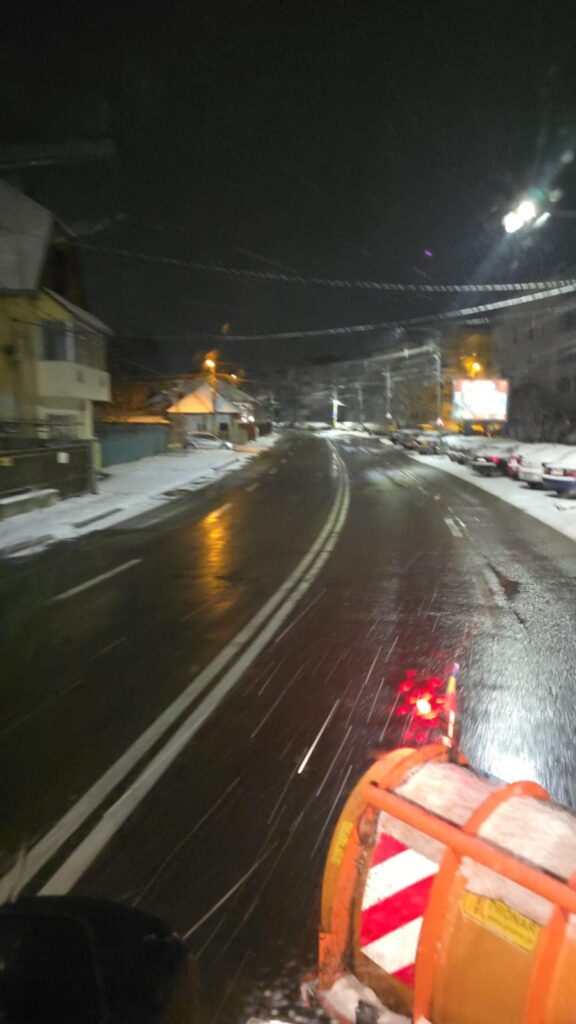Și la această oră utilajele de deszăpezire sunt pe străzi iar echipele noastre intervin atât pe arterele principale cât și prin cartiere pentru a îndepărta zăpada și a preveni formarea poleiului.
